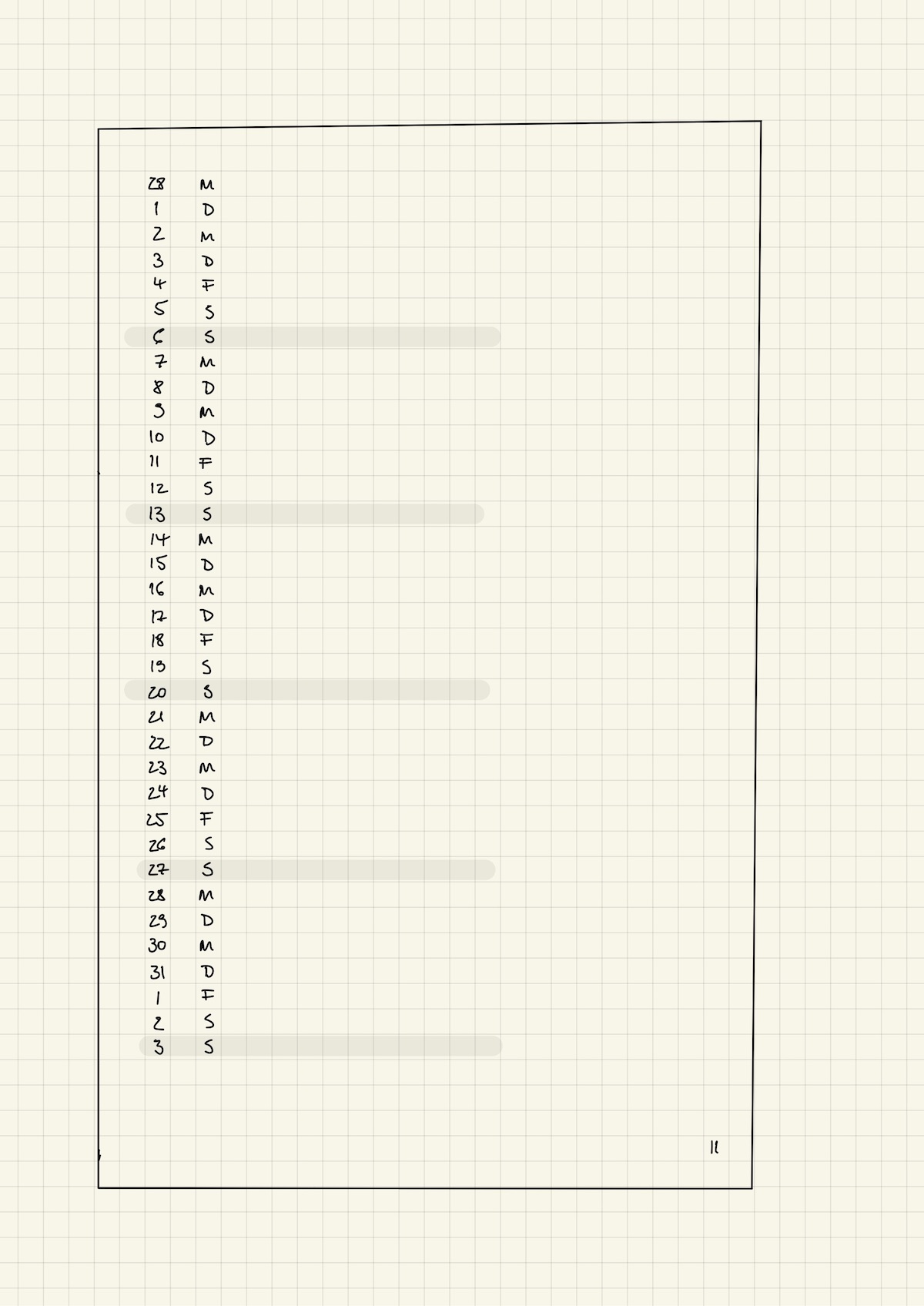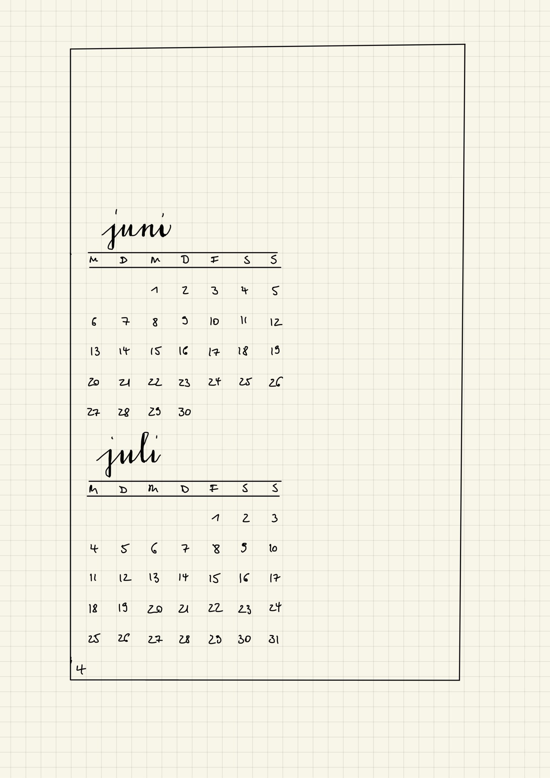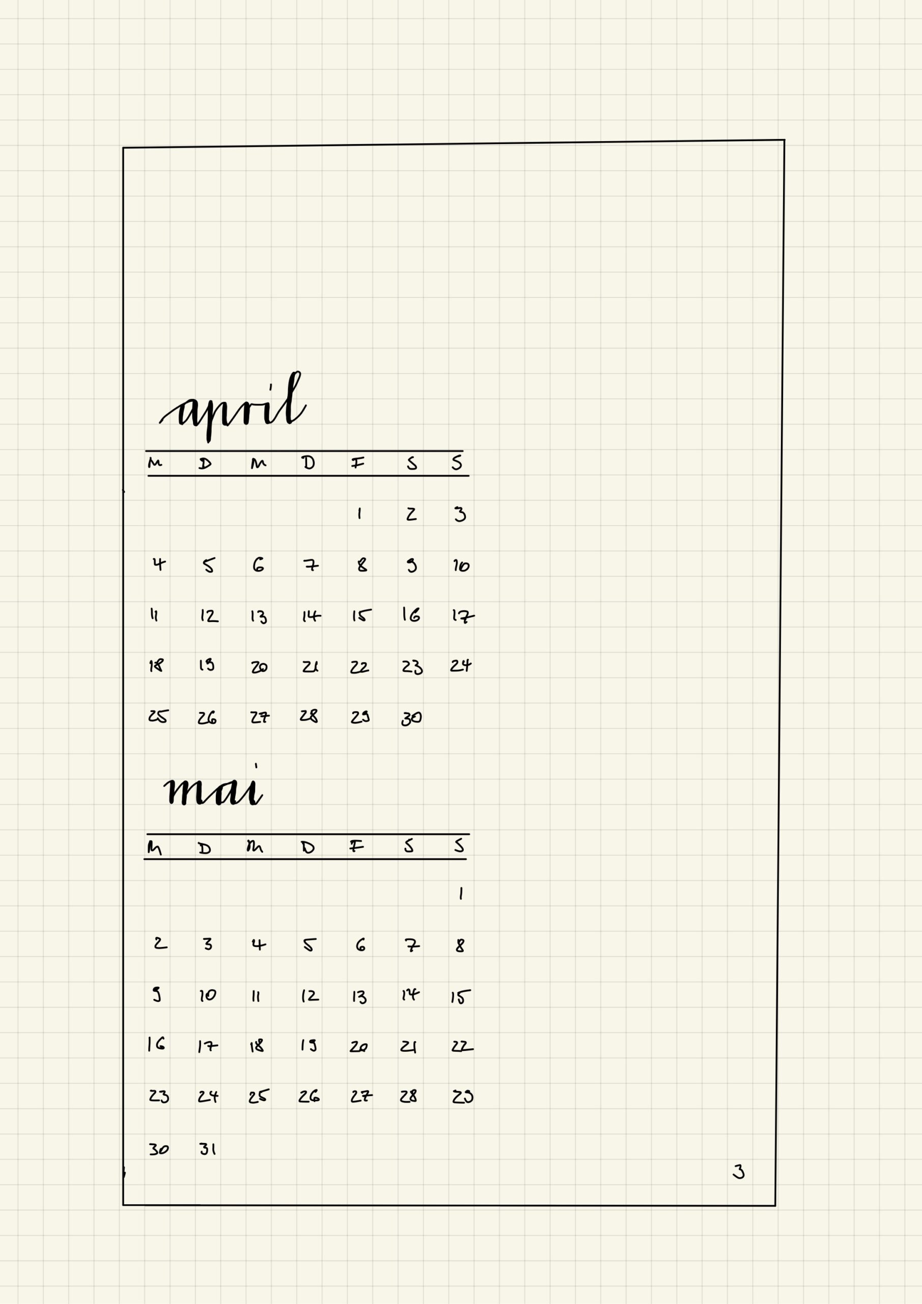 Als nächstes haben wir Ferien und freie Tage (Himmelfahrt, Pfingsten) ins Future Log eingetragen. Nehmt dafür eine unauffällige Farbe, die ihr nicht für andere Zwecke verwenden wollt! Ich liebe mein blasses Grau. Hier auf den Bildern seht ihr dann schon einen ersten Termin, den wir eingetragen haben. Dann war die GZ zu Ende.