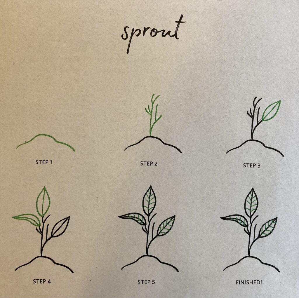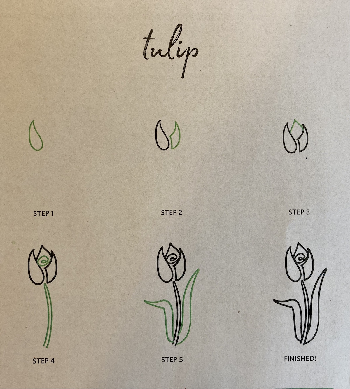 Hier gibt es noch ein paar Anleitungen für Pflanzen, kopiert aus dem Buch „Botanical Line Drawing“ von Peggy Dean. Wir haben nur Pflanzen gezeichnet, die jetzt (oder gleich) wachsen: