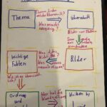 Dann machst du einen allerersten Entwurf, wie das am Ende aussehen soll und welche Themen du einbeziehen willst. Nur einzelne Stichpunkte! Immer noch keine genauen Informationen! Also so, wie wir es bei der Wandzeitung gemacht haben.