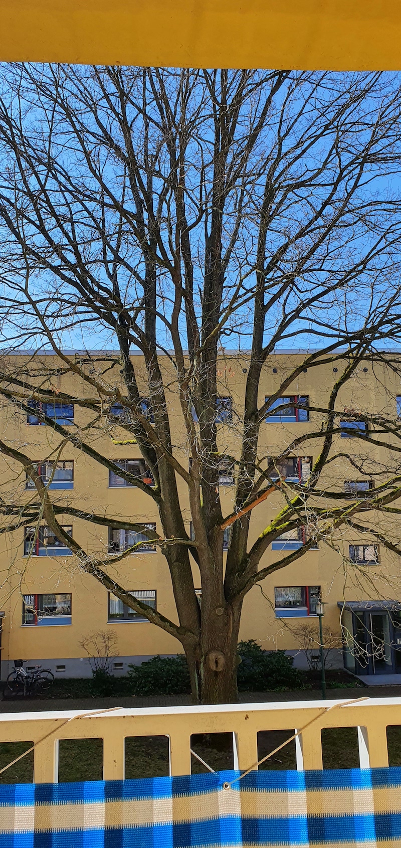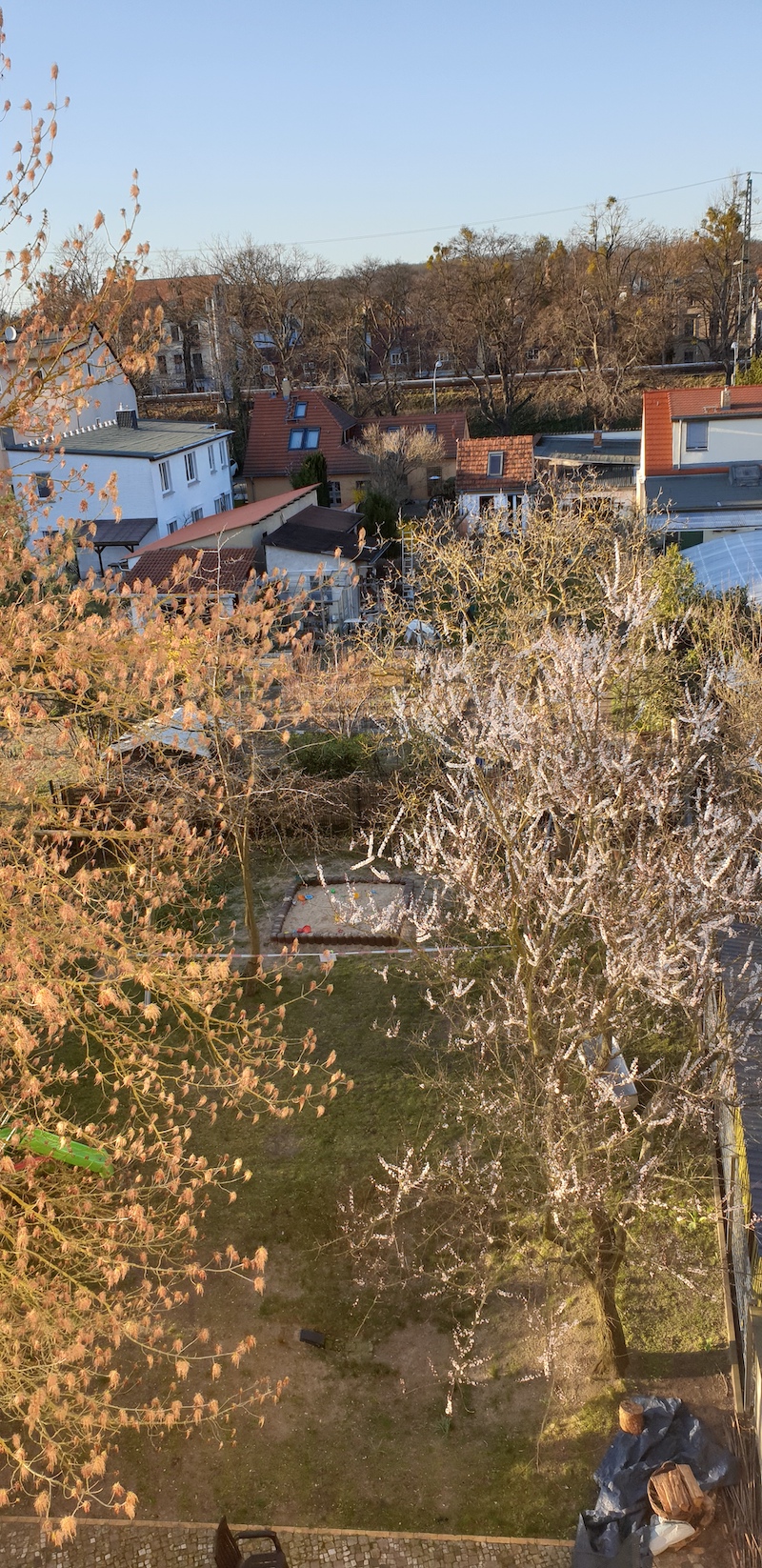 Ivel (2020) – Hast du bemerkt, was für exotische Bäume in unserem Garten wachsen? Gut, rechts Aprikose, nicht ganz so exotisch – aber links, sehr selten: Kalifornische Ulme. Blüht ganz zauberhaft mit so Puscheln 🙂 (Kae)