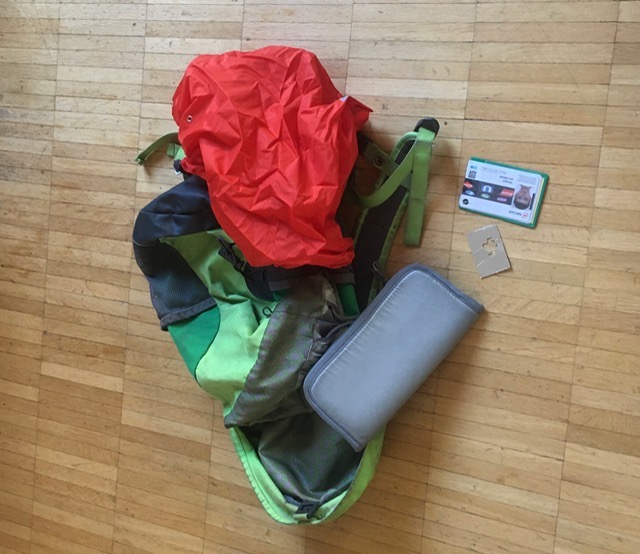 Birgit (2020) – Und hier noch der Inhalt meines Rucksacks … (Den Schlüssel, der immer draußen dran bammelt, habe ich vergessen.)