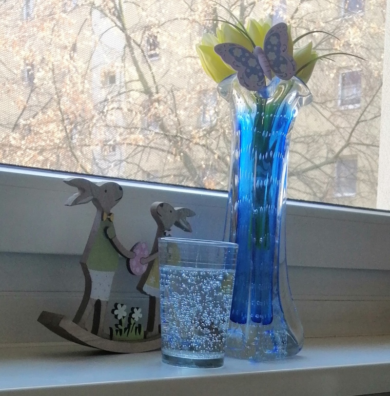 Tipp: Stell dein Trinken in eine Umgebung die du magst, z. B. nach draußen. Vielleicht magst du noch ein paar passende Sachen dazu legen, damit es schöner aussieht.