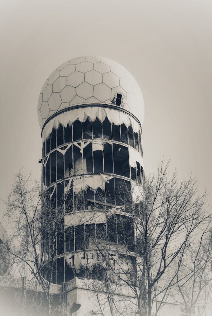 KK (2020) – Hier kommt unser Beitrag – wir hatten versucht, Neles tolles Motiv noch einmal zu erwischen, und radelten in fast voller Besetzung in den Grunewald. Leider war das Objekt von dreifachem Stacheldrahtzaun umgeben, so dass wir nur aus der Ferne fotografieren konnten 🙁 Aber immerhin konnten wir beim Anstieg auf den Teufelsberg mal alle unteren Gänge testen. Das Ergebnis ist, dass sich seit der Rückkehr alle in die Waagerechte begeben haben 🙂