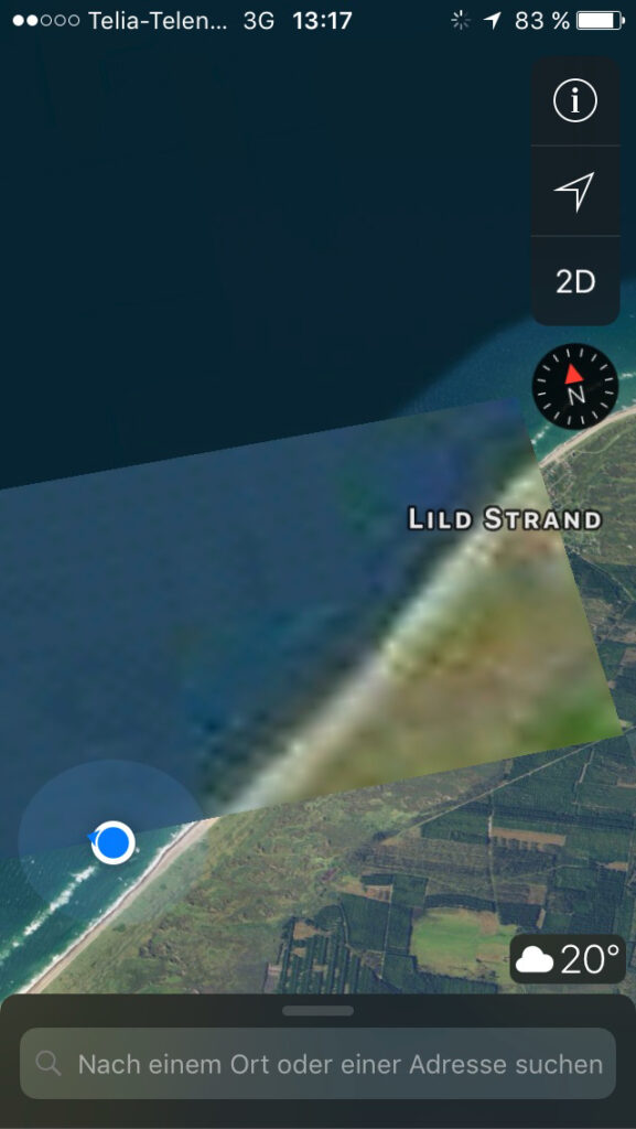 Birgit (2020) – Ungefähr dahin wollten wir Ostern eigentlich fahren. Geht ja jetzt nicht: Reisen nach Dänemark nicht erlaubt und Auto kaputt. Siehst du, dass Milla und ich (anscheinend) mitten im Wasser stehen und welch beeindruckende Heckwelle wir beim Wandern hinterlassen?