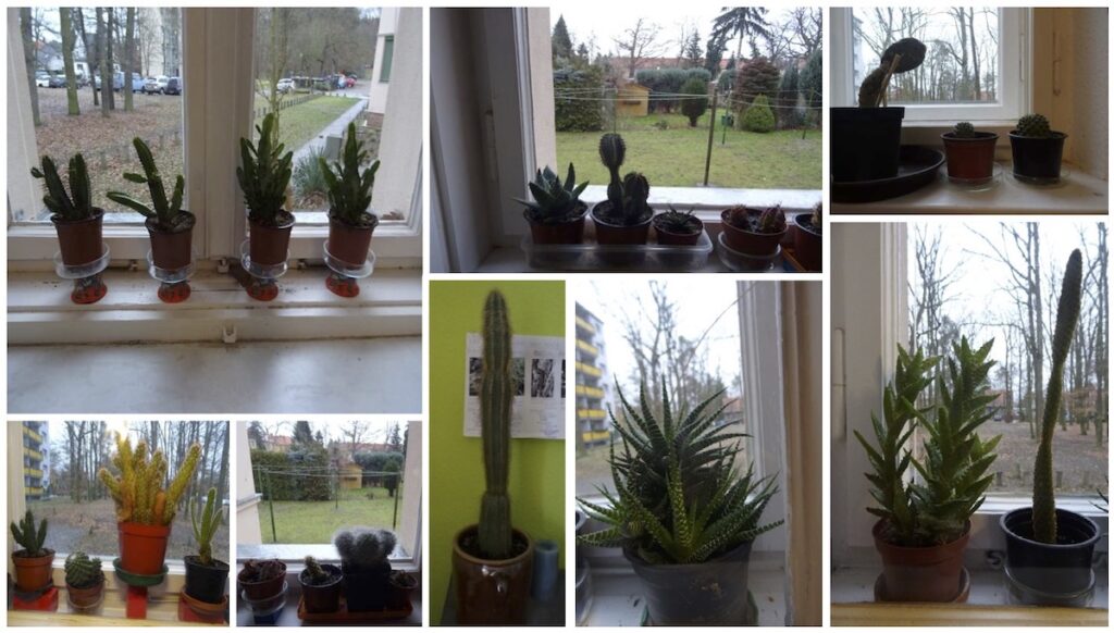 So sah er damals aus … (April 2020)Di. – … der steht noch bei uns rum und wartet auf seine Einpflanzung. Täglich neigt er sich etwas mehr, das finden wir sehr englisch. Denn wie ein altes Sprichwort sagt: Schief ist englisch und Englisch ist modern.Katja K. – Der kleine grüne Kaktus oben links war mal so ein Rest von einem sozialen Tag („och, Mama, der steht da ganz alleine …“). Nun ja, einfach nur ein Foto ist ja langweilig, daher habe ich ihn (natürlich nur virtuell) durchs Kaleidoskop gejagt. Ich finde, das macht ihn noch stacheliger 🙂Nele – „Und wenn ein Bösewicht Was Ungezogenes spricht, Dann hol‘ ich meinen Kaktus Und der sticht, sticht, sticht.“Helene – Zugegeben, einen Kaktus habe ich nicht. Aber etwas Grünes und etwas Kleines auf dem Grünen! Und beim Fotografieren das Kaktuslied im Kopf. Es war damals, im Kerstin-Chor, eines meiner Lieblingslieder – ich liebte das stufige Singen und die Absurdität des Textes.